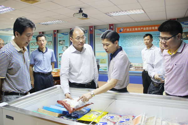 2014年12月22日,北海市委常委、副市長紀偉昕在北海高新區管委會主任李光劭陪同下到正五海產公司進行專題調研。